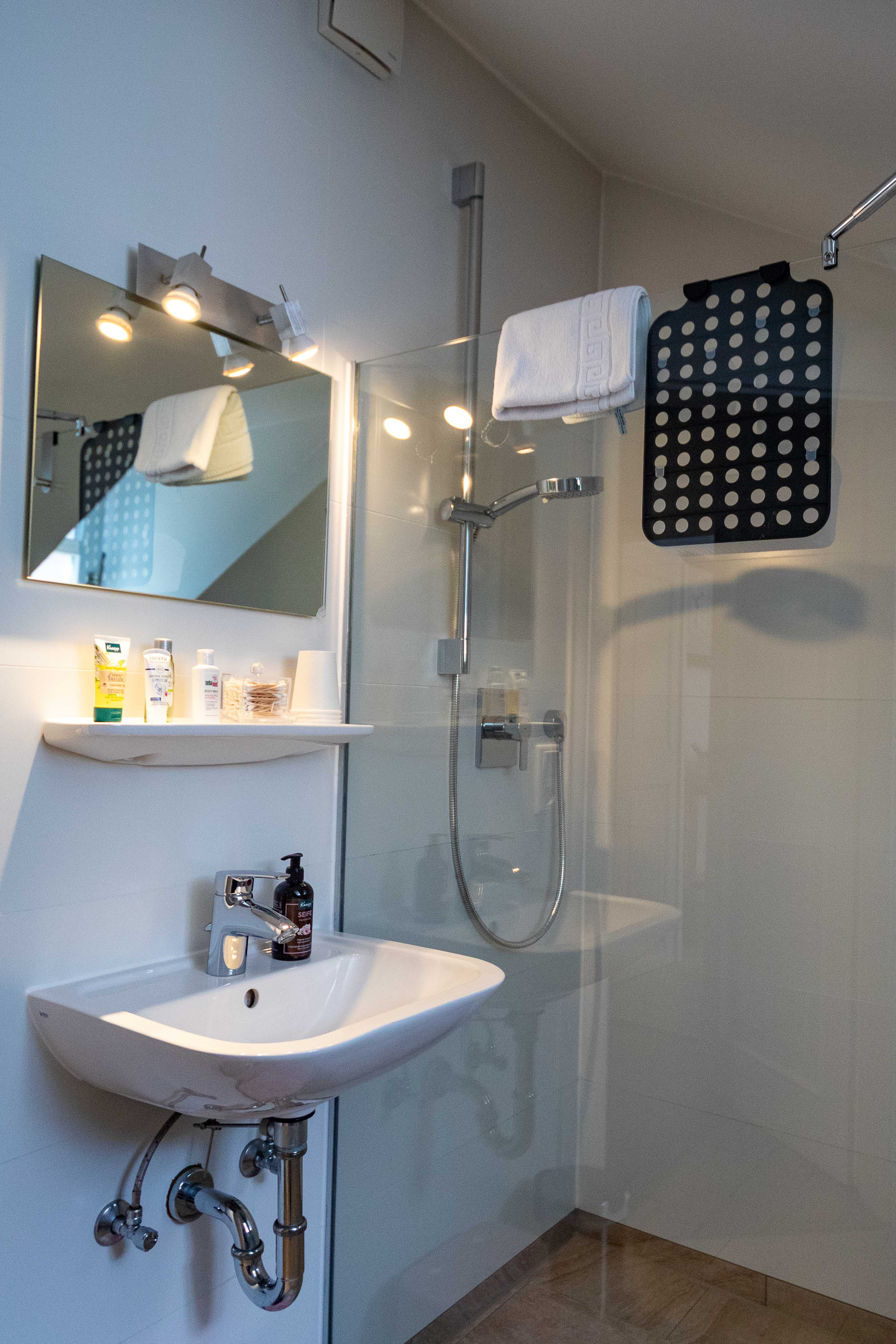 Auch hier warten eine Kaffeestation für Koffein-Junkies, Handtücher, Badetuch, Föhn (für die perfekte Donauwelle) und verschiedene Pflegeprodukte in Reisegrösse auf euch.