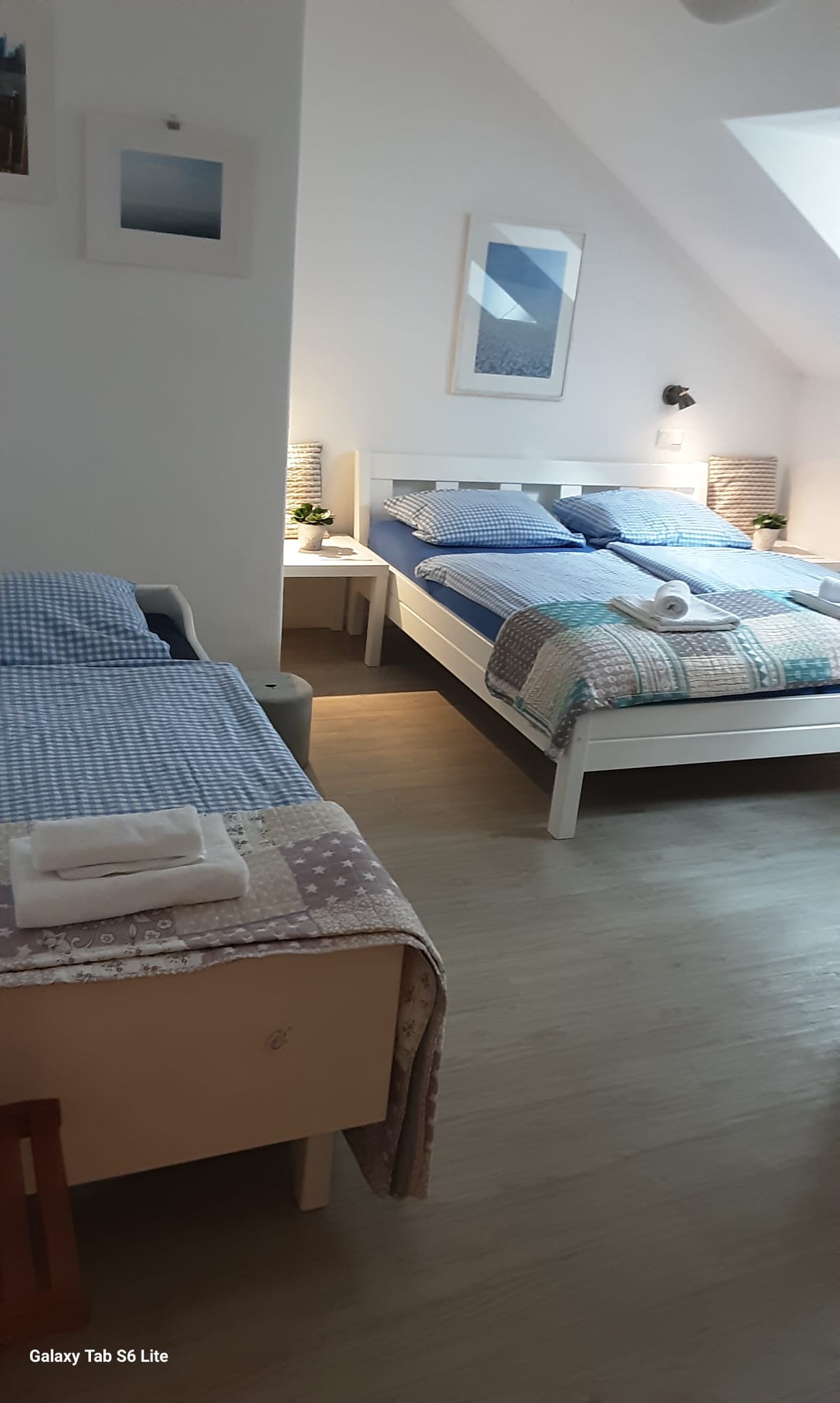 Das gemütliche Mehrbettzimmer, 22 qm, für den Urlaub mit der Familie oder mit besten Freunden, ist ausgestattet mit je zwei übereinander liegenden Betten (1,40 x 2m), also viel Platz für süsse Träume, sowie einem eigenen separaten Bad mit Dusche und WC.