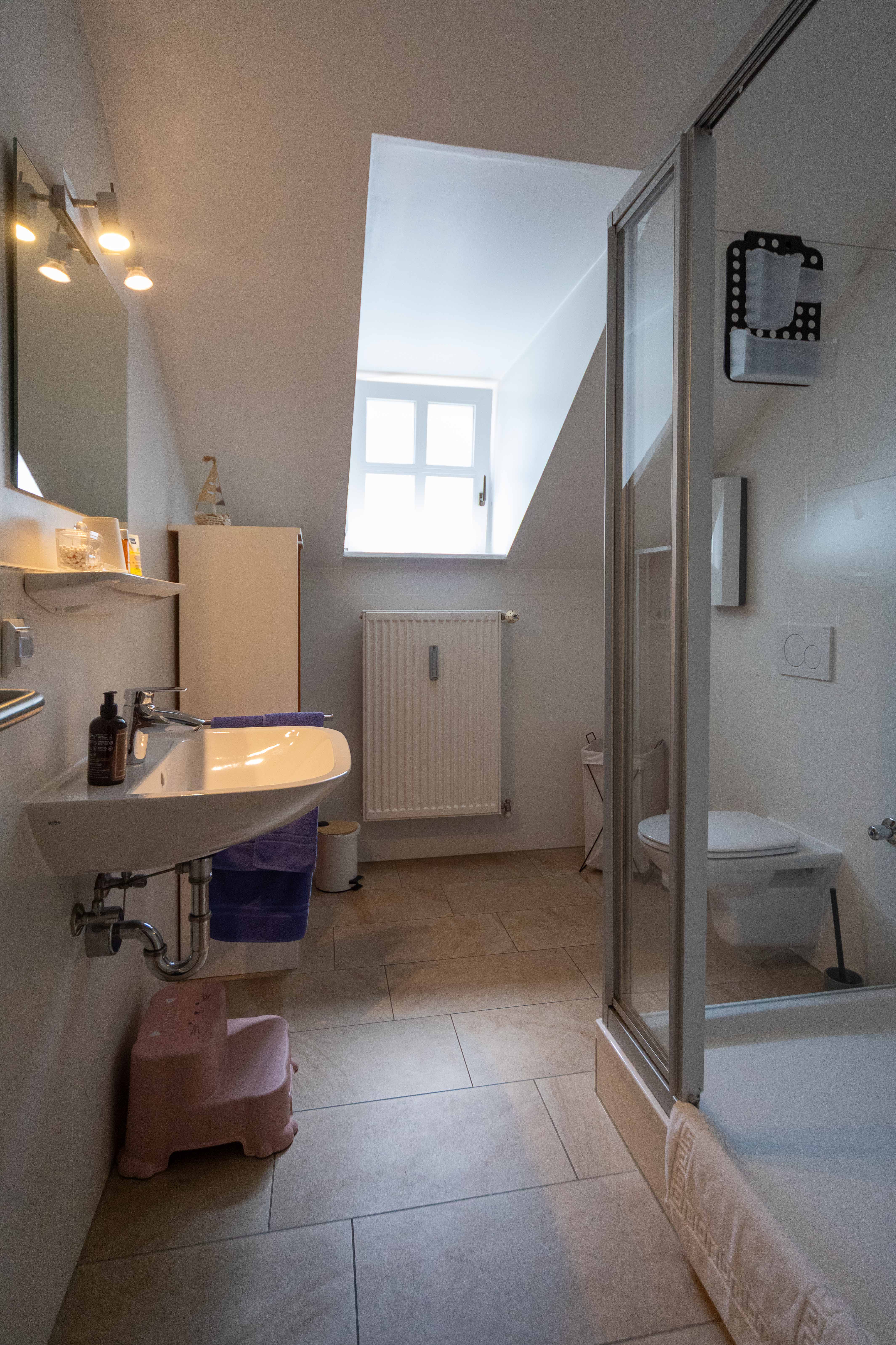 Auch hier warten eine Kaffeestation für Koffein-Junkies, Handtücher, Badetuch, Föhn (für die perfekte Donauwelle) und verschiedene Pflegeprodukte in Reisegrösse auf euch.