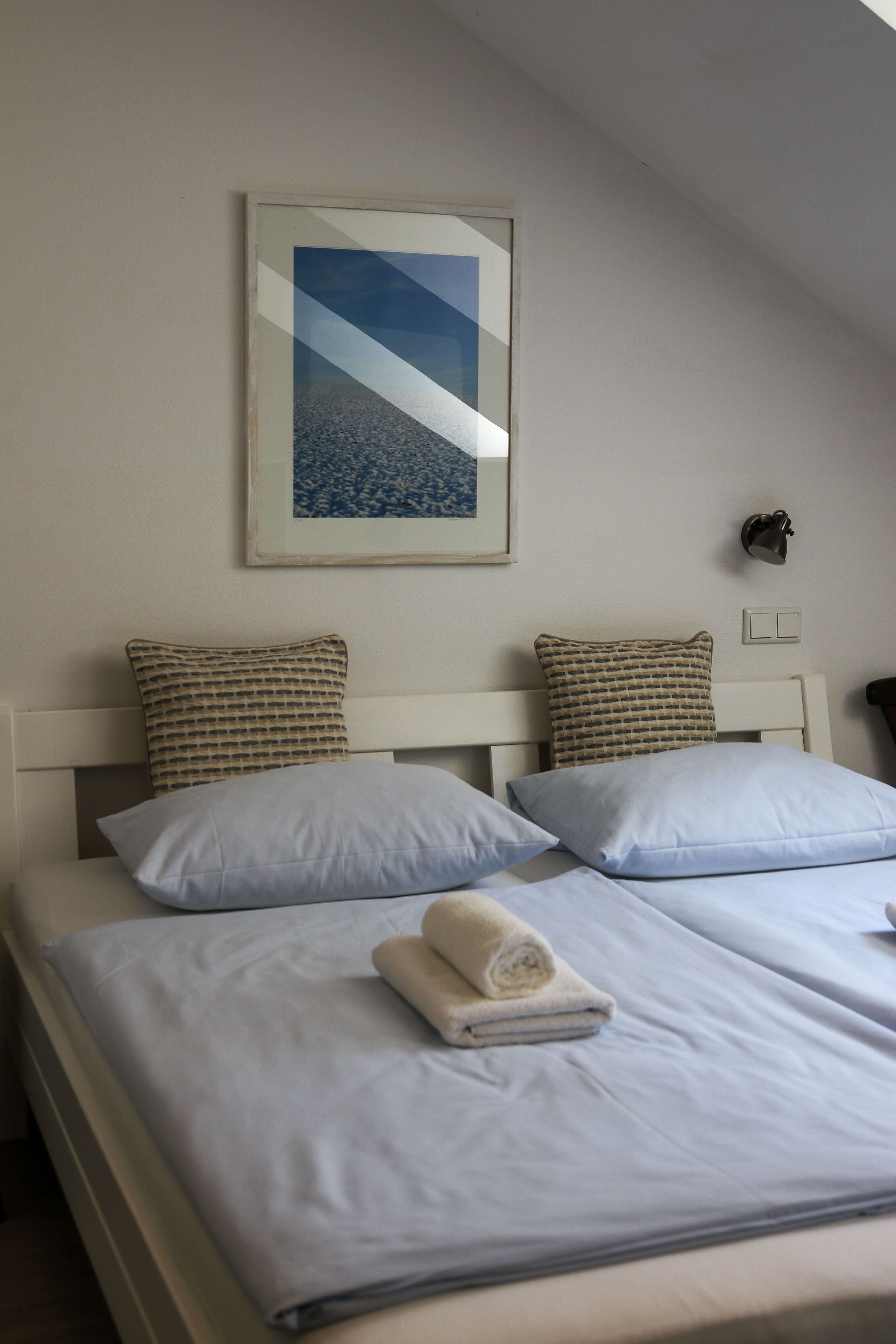 Das behagliche Doppelzimmer, 26 qm verfügt über ein gemütliches, 1,80 x 2m grosses Bett und ein eigenes separates Bad mit Dusche und WC.